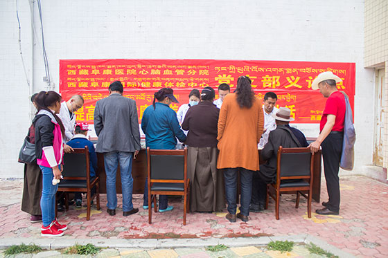 为深入贯彻落实党的群众路线政策,用实际行动推进“两学一做”学习教育开展,2016年5月22日上午,西藏阜康医院心脑血管分院及体检中心党支部组织了一支由医、技、护组成的6人医疗队走进仙足岛生态园小区开展主题为“提高居民健康素养,构建幸福和谐生活”的义诊活动。