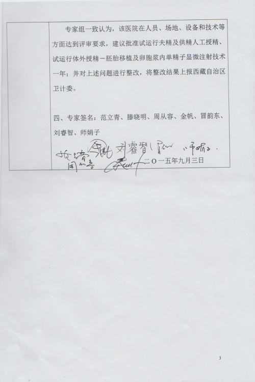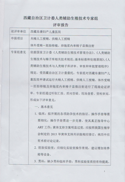附件:西藏自治区卫计委人类辅助生殖技术专家组评审报告