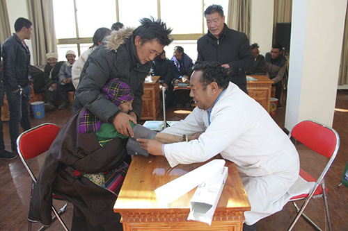 3月12日,在自治区政协驻那曲县罗玛镇、古路镇驻村工作队的协调下,西藏阜康医院派出2个医疗队分赴罗玛镇5村、6村、7村和古路镇1村开展为农牧民免费体检和送医送药活动,切实把党和政府的关怀和温暖送到了农牧民群众心坎上。