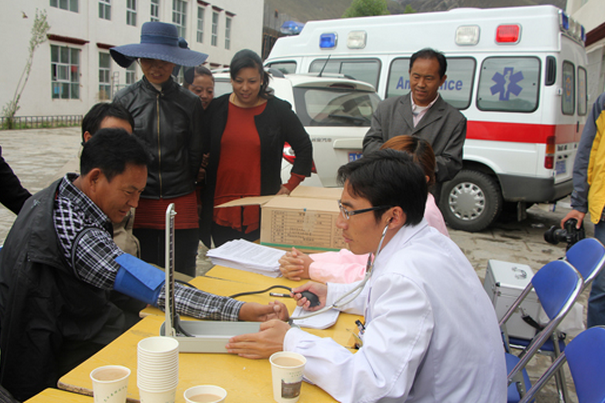 当日,西藏阜康(国际)健康体检中心、阜康医院心脑血管分院的医护人员分别为尼木县续迈乡完小、吞巴乡完小的老师们免费体检义诊,并向两所学校的老师们免费发放了价值3000元常用药物。