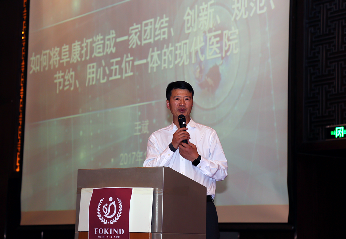 “现在整个中国都已融入世界发展的快车道,中国价值已被越来越多的国家认可。习近平主席提出的四个全面、五位一体、人类命运共同体也得到越来越多人的拥戴。而我们个别员工还停留在有谁罩着我,跟着谁混保平安的落后思想!现在我们唯有团结一致、勇于创新、规范管理、厉行节约及用心服务的思想才能在激烈的医药行业闯出阜康的一片天地。现在企业准备上市,大家必须严格按照上市企业的要求做到自律,规范服务接受社会大众的监督!因为大家那怕不好的一言一行都会影响阜康的上市工作!从阜康过去发现的问题来看,这些问题的出现,主要是我王斌的问题,我以前只要求大家要做什么没告诉大家怎么做才符合阜康的核心价值观,缺少必要的岗前培训。以后要加强德育和治理能力的培训,只有这样才能形成院领导服务科主任,科主任服务科员,行政后勤服务医技护临床一线,一线员工服务患者的思想,主动提高服务意识和水平彻底告别生、硬、冷的服务态度!让阜康再次成为西藏医药行业的标杆。”王斌说。