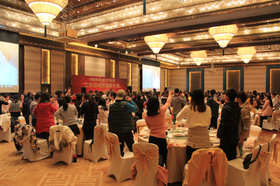 会议结束后,我们的新年团拜晚宴正式开始,大家欢聚一堂,为阜康医院必将更加辉煌璀璨的明天举杯同庆。在晚宴现场,有我们的各位员工、专家乃至王斌董事长为大家欢唱助兴,并且同样激动人心的抽奖活动也在晚宴举行,由王总、陈总亲自抽取奖券,中奖的幸运儿们可以获得充电宝、吹风机、加湿器等多重大奖礼品,其中获得温馨奖的幸运儿,则可以在价值1500元的香格里拉豪华套房免费住宿一晚。