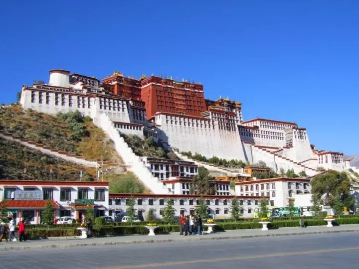 布达拉宫位于拉萨市红山之上,最初为吐蕃王朝赞普松赞干布为迎娶尺尊公主和文成公主而兴建。1645年(清顺治二年)清朝属国和硕特汗国时期护法王固始汗和格鲁派摄政者索南群培重建布达拉宫之后,成为历代达赖喇嘛冬宫居所,以及重大宗教和政治仪式举办地,也是供奉历世达赖喇嘛灵塔之地,旧时与驻藏大臣衙门共为统治中心。今天的布达拉宫已是世界闻名,其文化价值无法估量。