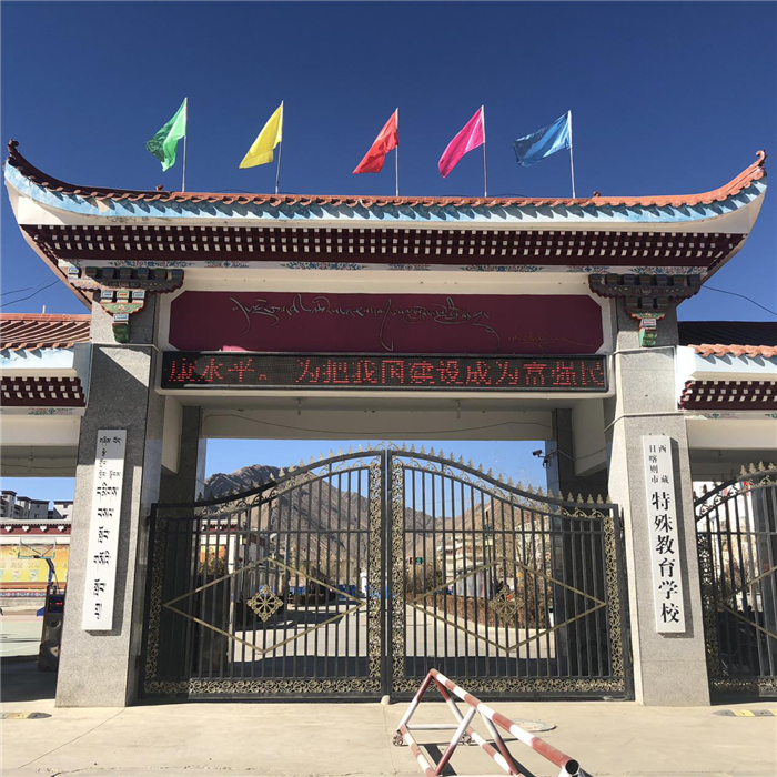 日喀则市特殊教育学校于2008年开始筹备,2010年正式招生,主要招生对象是日喀则18个县区和阿里地区的聋哑、盲、智障的孩子,学校现有14个教学班,在校学生225人。学校提供九年义务教育和基础职业技能培训,实行封闭式管理的一所特殊教育学校。