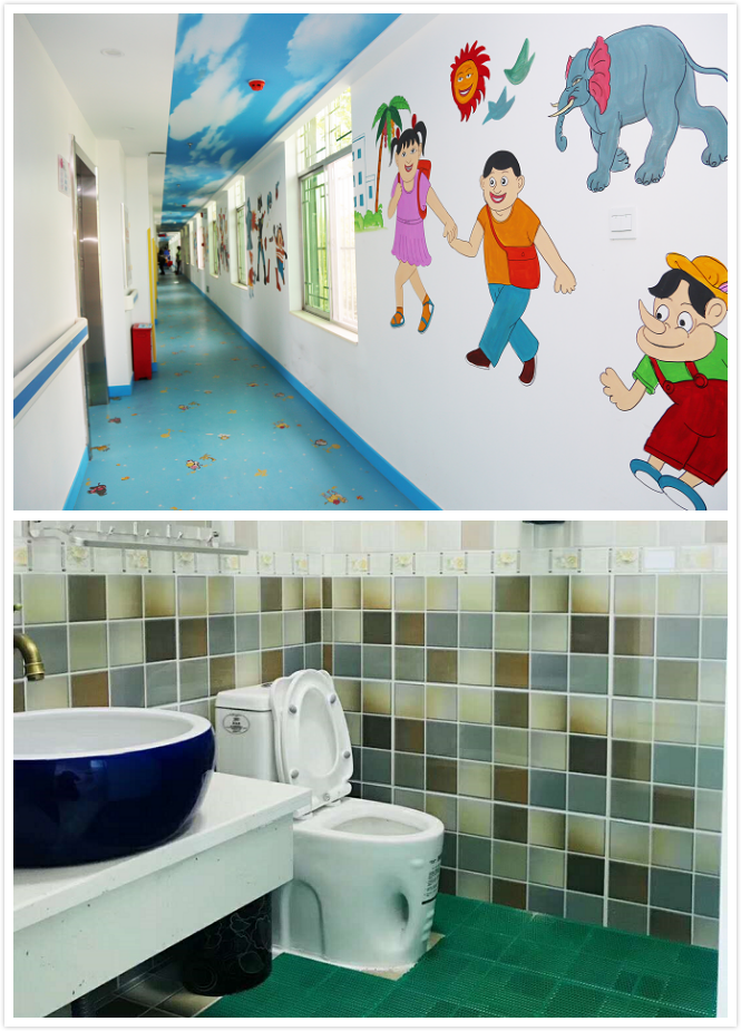 病房采用目前最先进的儿童病床,儿童专用卫生间。房间和走廊增加了许多孩子们喜欢的卡通元素,设置了专用的儿童游乐区,配备了各种玩具,使病房变身为孩子们的游乐园。