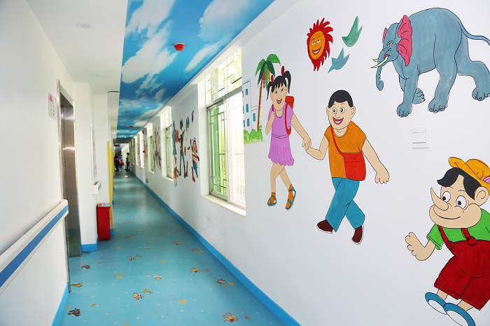 近日,随着医院的改造升级,儿科病房一改往日单调刻板的面貌,变身童趣十足的游乐园。整个科室以儿童喜爱的鲜亮色彩作为主色调,并增添了许多人性化设计,将原来白色墙面丰富为彩色亮丽、充满童趣的墙体,走廊处画上了各类卡通图案,营造了温馨可爱的氛围,小朋友们就诊时如同置身于卡通乐园,充分体现了现代化专科医院室内设计的人文理念。