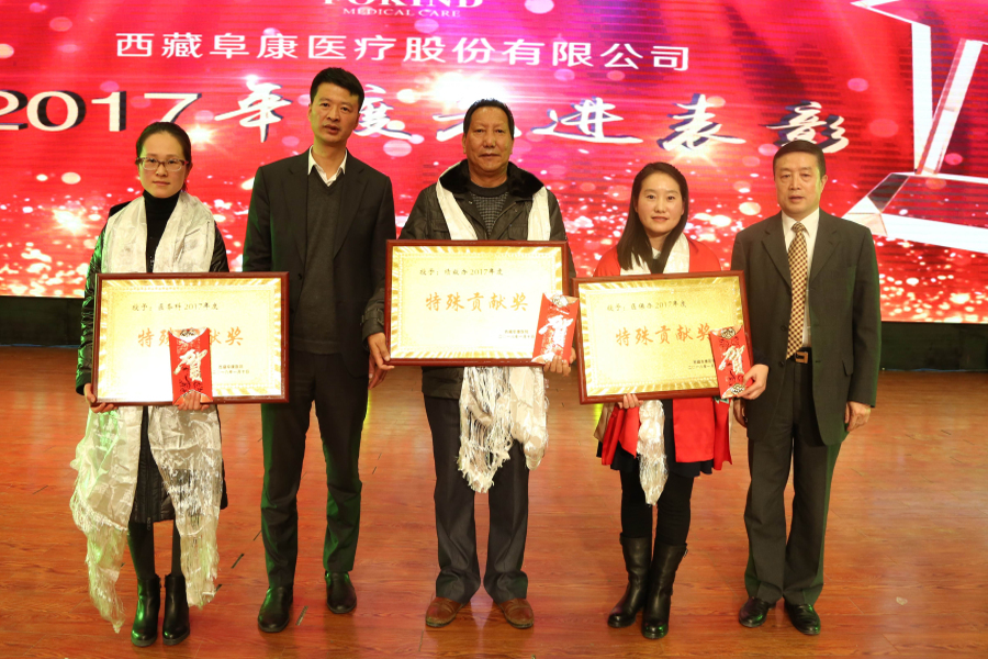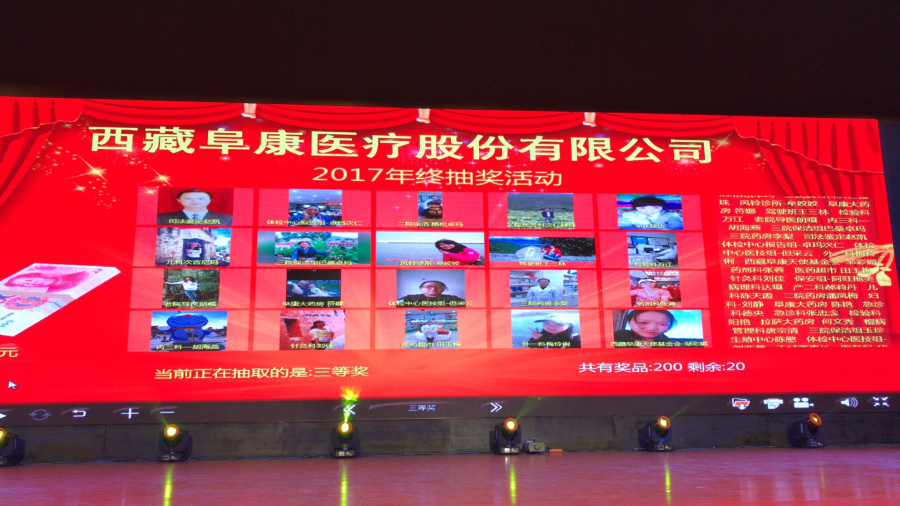 2018年1月10日,西藏阜康医疗股份有限公司新年团拜会在拉萨洲际酒店举行,下午四点来自西藏阜康医院、妇产儿童分院、心脑血管分院、健康体检中心、阜康大药房、超市的员工陆续来到会场。下午五点,主持人刘连福院长宣布会议正式开始,场内音乐响起,董事长王斌带领医院领导和特邀嘉宾入场,会场立刻响起雷鸣般的掌声和欢呼声。