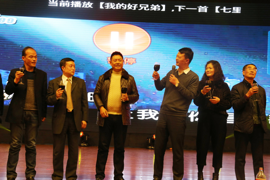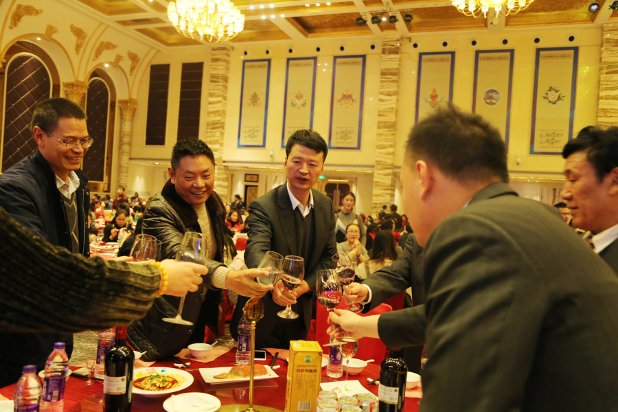 晚宴尾声,董事长王斌邀请所有院级领导上台共同举杯说:“希望大家在新的一年继续沿着创新的道路团结一致、规范管理、用心服务,开源节流地做好自己本职和医院的工作。我相信,在各位阜康同仁的共同努力下,2018年我们一定会保质、保量完成工作计划。为保障西藏自治区广大人民群众的身体健康做出新的更大的贡献,促进医院健康、持续、稳步地向前发展,更上一层楼,再铸新辉煌! ”