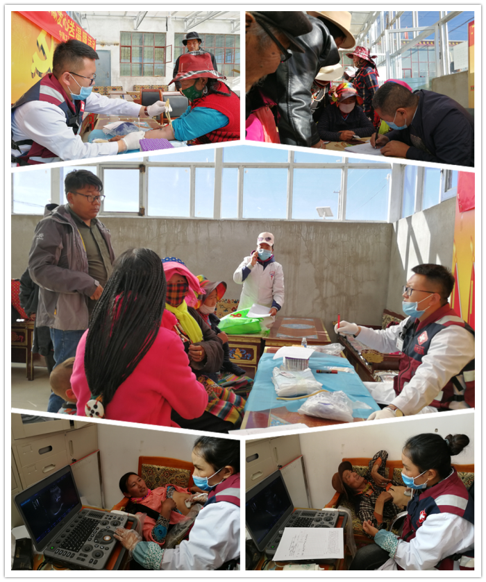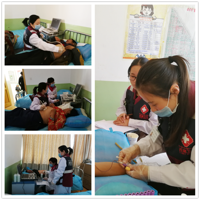 9月19日包虫病筛查工作进行到第三天,为了加快工作进度,我医疗队同前一天一样分成两个小组:由钟义华检验士和格桑拉吉技师同索南院长一组前往森布村进行筛查,由刘冬梅医生、刘娟医生、丁雪琴医生、刘亚美护士组成一组留在革吉镇卫生院为革吉镇职工干部及流动人口做包虫筛查。