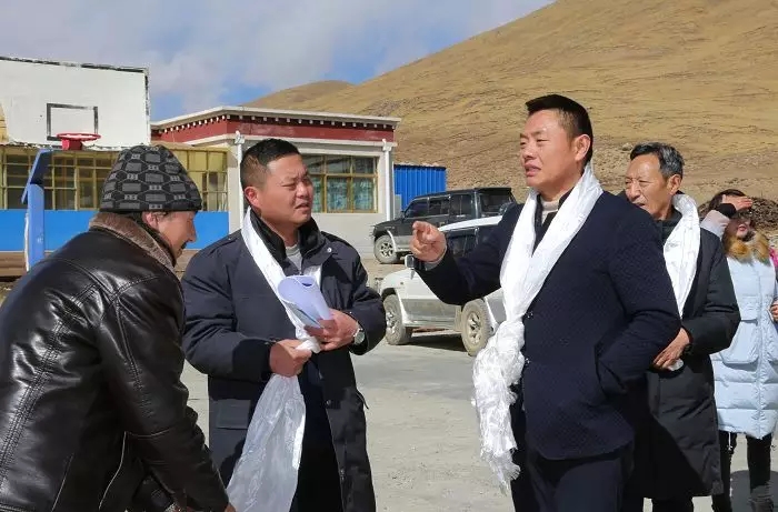 这次陈彬副书记一行来到夏玛乡还有另一个目的,2018年由西藏阜康医院投资援建的夏玛乡卫生院即将开工建设,王铁君副总经理带来了阜康援建嘉黎县夏玛乡卫生院的图纸,并陪同陈彬副书记和李智安乡长进行了实地查看,为开工建设做好前期筹备工作。卫生院建设完成后,将大大缓解夏玛乡村民看病难的问题。