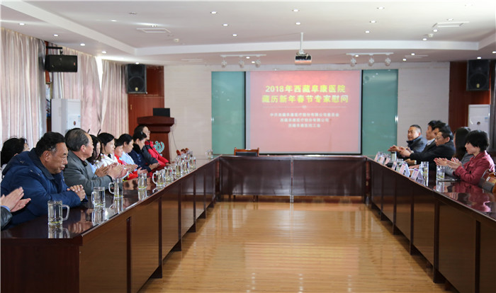 在藏历新年和新春佳节来临之际,2018年2月15日、16日,受公司党委书记王斌同志委托,由公司党委副书记、副总经理陈彬同志,西藏阜康医院院长阿旺建才、西藏阜康医院院长欧珠罗布带队的双节慰问小组集中慰问春节期间坚守在一线的专家、医务工作人员、行政后勤员工及不能出院与家人团聚的患者。为他们送来了董事长的关心和问候,带来了新年的美好祝愿和饱含暖暖情谊的慰问礼物。