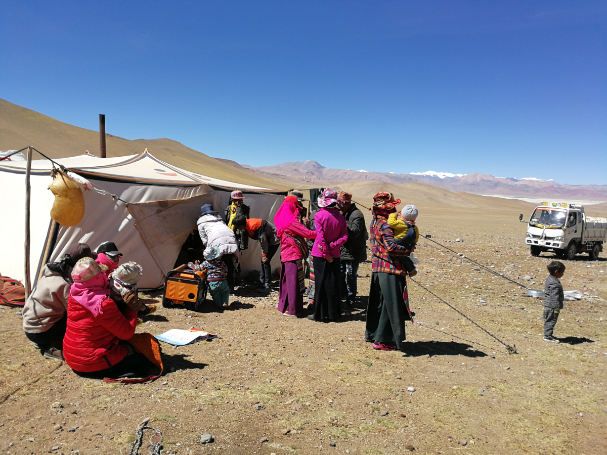 我仔细观察四组前来的牧民,不管大人小孩,衣服都是干干净净的。那普居委会由李毛措主任团队驻村管理,那普居委会是本地的示范居委会,因为政府管理得当,卫生安全普及到位,居委会传染病、包虫病的感染人数很少。他告诉我,牧民们要穿戴干净、讲卫生其实很难,他们要到很远的地方才有水源,而且天气恶劣寒冷,洗衣服都是一件困难的事情。