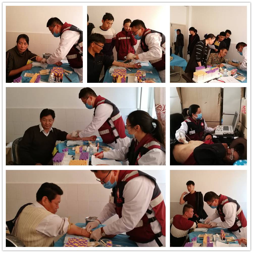 刘东梅医生和钟义华检验士组继续留在革吉县卫生院为干部职工和当地牧民体检。虽没有牧区条件艰苦,但工作量却极大,工作队全体人员在工作时间内几乎没时间喝水、上厕所,一整天下来往往直不了腰。
