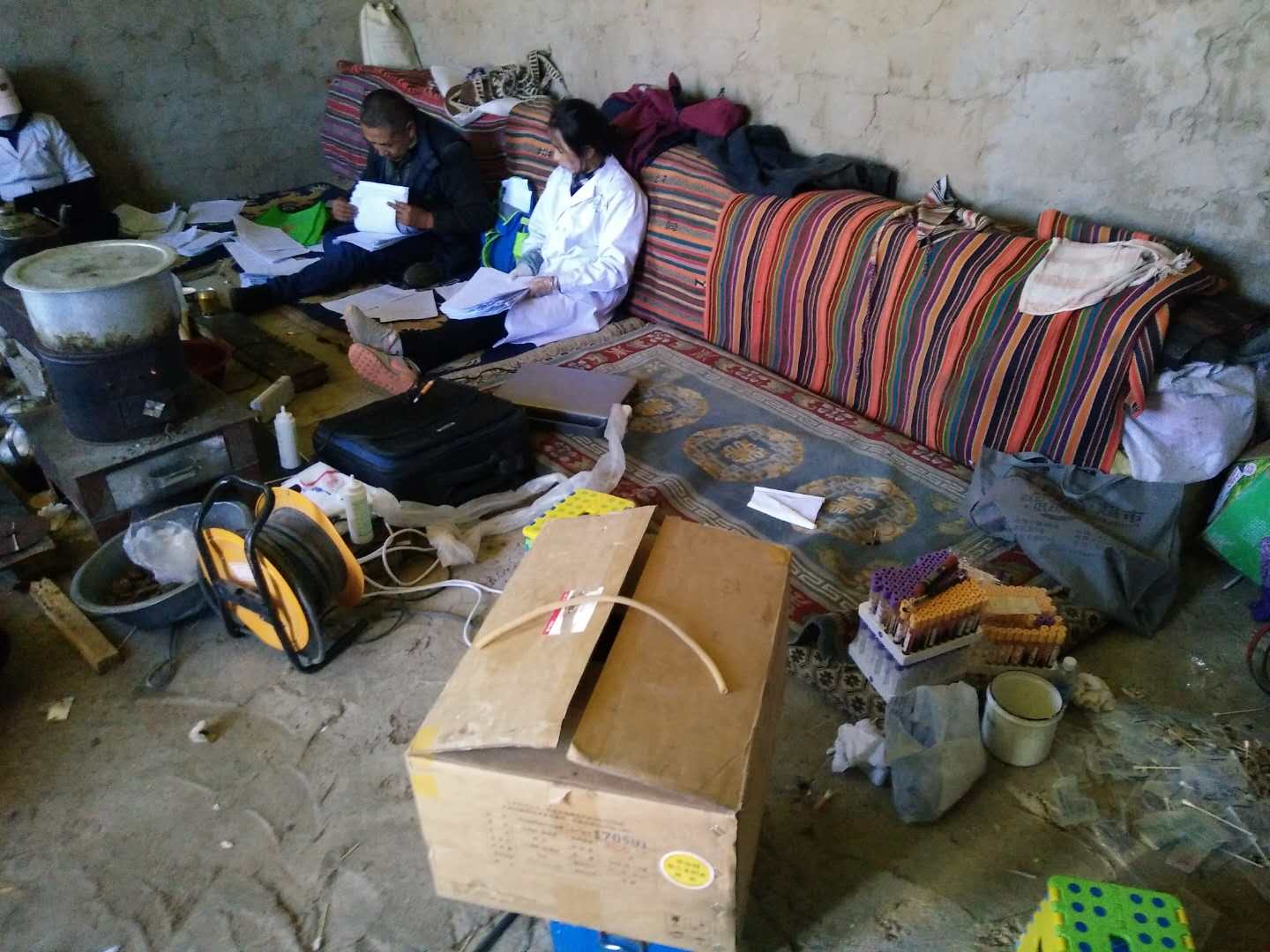 由于在高海拔持续工作已达二十天,高寒、缺氧、低压、强辐射导致阜康医疗队成员每天都休息不好,但他们并没有因此暂缓包虫病筛查的脚步,而是克服重重困难,平均每天坚持工作10小时以上。