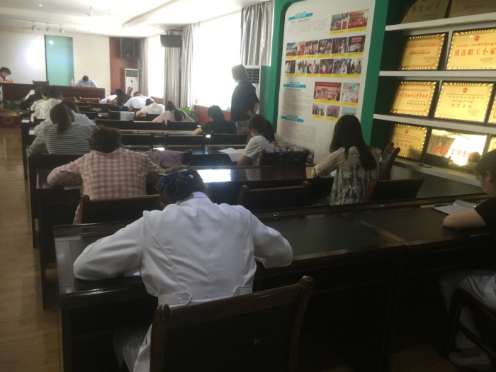 本季度操作考试采取现场抽签,以“三选一”的形式分别对:女性患者导尿术、简易呼吸气囊的使用及心电监护仪的使用三大项目进行了考核,并由各科室护士长担任本次考核的监考人,三人为一组,保证了考试的严谨性、公平性。