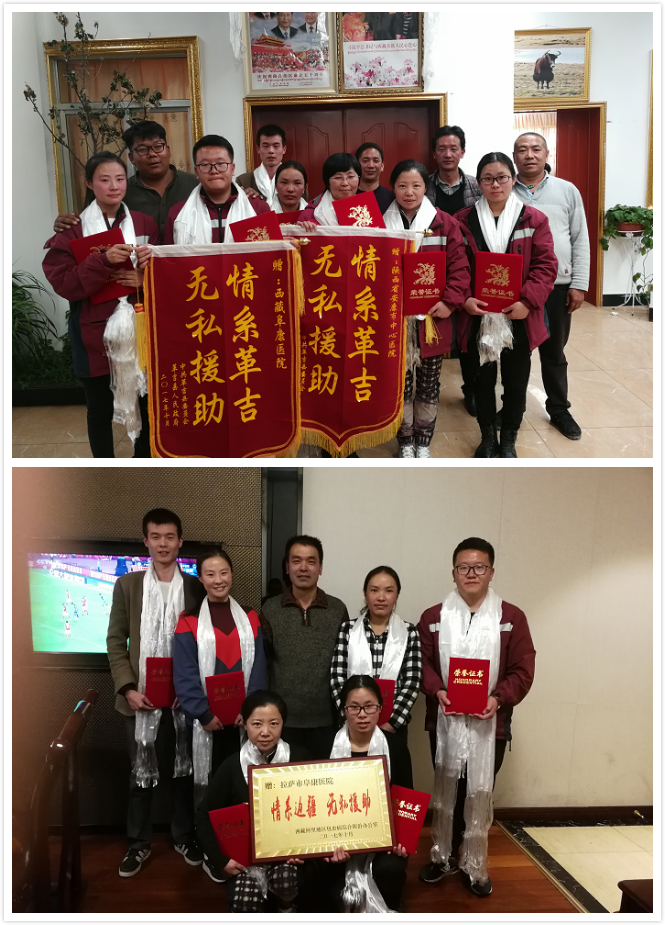 为表彰阜康医疗队在阿里包虫病筛查中所作出的贡献,阿里地区包虫病综合防治办公室授予我院“情系边疆,无私援助”锦旗,中共革吉县委员会、革吉县人民政府授予我院“情系革吉、无私援助”荣誉称号,阿里地区卫计委、革吉县卫生局为医疗队的每一位成员颁发荣誉证书。
