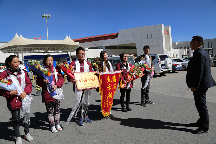 值此秋高气爽、硕果累累的丰收季节,10月23日,阜康医疗队圆满完成阿里地区包虫病义务筛查任务,满载荣誉而归,随着医疗队全体成员从拉萨机场缓缓走出,陈彬副书记代表公司党委对他们表示了热烈的欢迎,并为每位队员献上鲜花和哈达,欢迎他们回家。