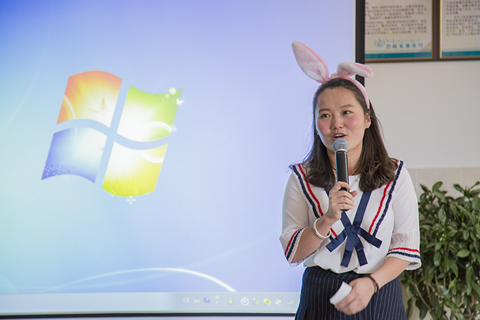 ▲人事科副科长乔倩主持亲子活动