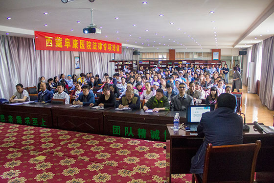为深入学习贯彻习近平总书记对“两学一做”学习教育中作出的关于“做人做事坚守法律底线”重要指示精神。由公司党委组织于2016年5月25日邀请了西藏伟豪律师事务所律师、西藏阜康医院法律顾问胡可同志为公司职工进行为期两天的法律法规专项培训。公司共有350位职工参加了此次培训学习。